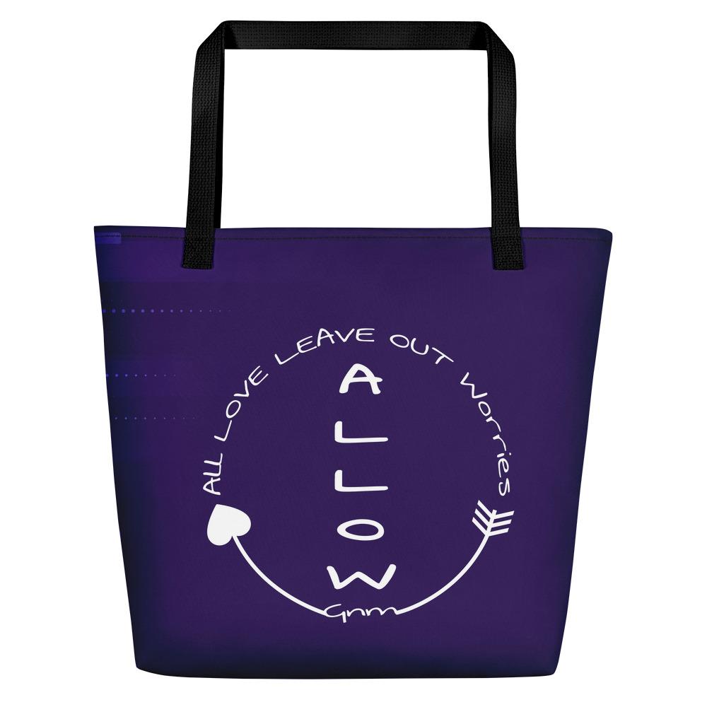 Allow - All Love Leave - Out Worries - Beach Bag. A trendy beach bag, where you can put everything that matters when hitting those warm beaches. • 100% polyester fabric • Maximum weight limit – 44lbs (20kg) • Large inside pocket • Comfortable cotton webbing handles • Vibrant colors that won't fade • Available in one size All Inspirational Designs done in collaboration With GNM and Will's Mighty Design.