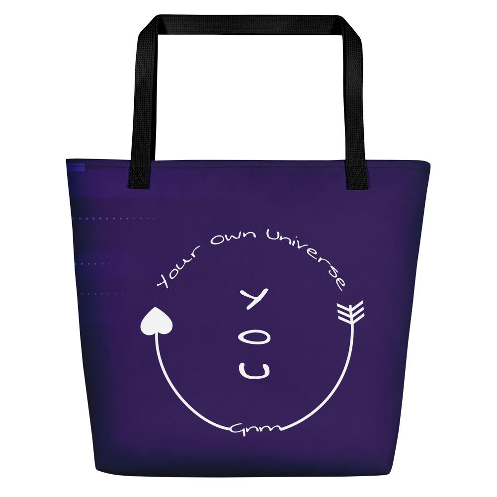 You - Your Own - Universe - Beach Bag. A trendy beach bag, where you can put everything that matters when hitting those warm beaches. • 100% polyester fabric • Maximum weight limit – 44lbs (20kg) • Large inside pocket • Comfortable cotton webbing handles • Vibrant colors that won't fade • Available in one size All Inspirational Designs done in collaboration With GNM and Will's Mighty Design.