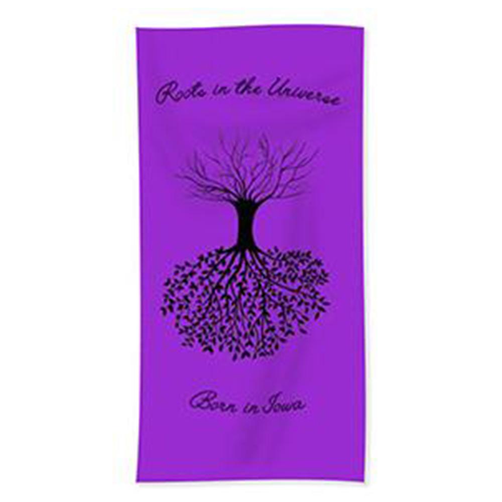 Born in Iowa -Roots In The Universe -Beach Towel. Our luxuriously soft beach towels are made from brushed microfiber with a 100% cotton back for extra absorption. The top of the towel has the image printed on it, and the back is white cotton. Our beach towels are available in two different sizes: beach towel (32" x 64") and beach sheet (37" x 74").Don't let the fancy name confuse you... a beach sheet is just a large beach towel. All Inspirational Designs done in collaboration With GNM and Will's Mighty Design.