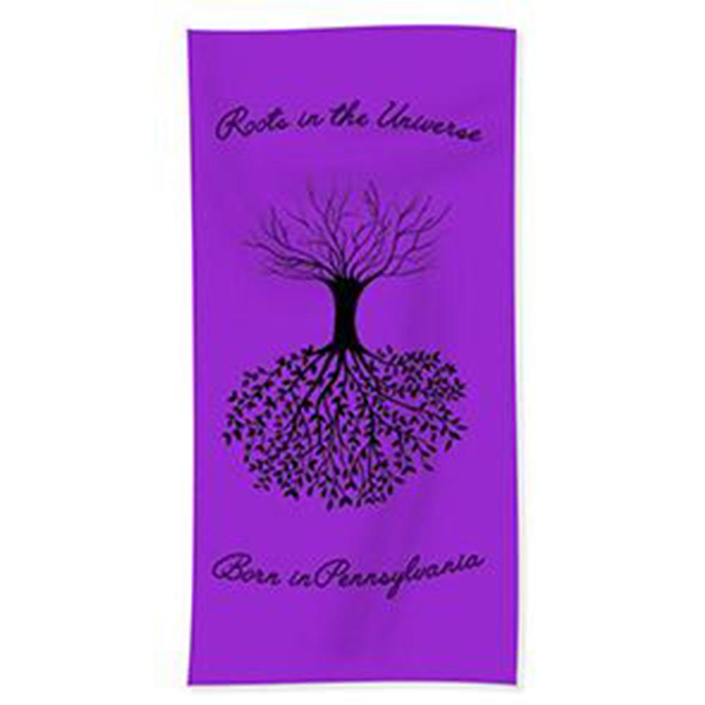 Born in Penn -Roots In The Universe -Beach Towel. Our luxuriously soft beach towels are made from brushed microfiber with a 100% cotton back for extra absorption. The top of the towel has the image printed on it, and the back is white cotton. Our beach towels are available in two different sizes: beach towel (32" x 64") and beach sheet (37" x 74").Don't let the fancy name confuse you... a beach sheet is just a large beach towel. All Inspirational Designs done in collaboration With GNM and Will's Mighty Design.