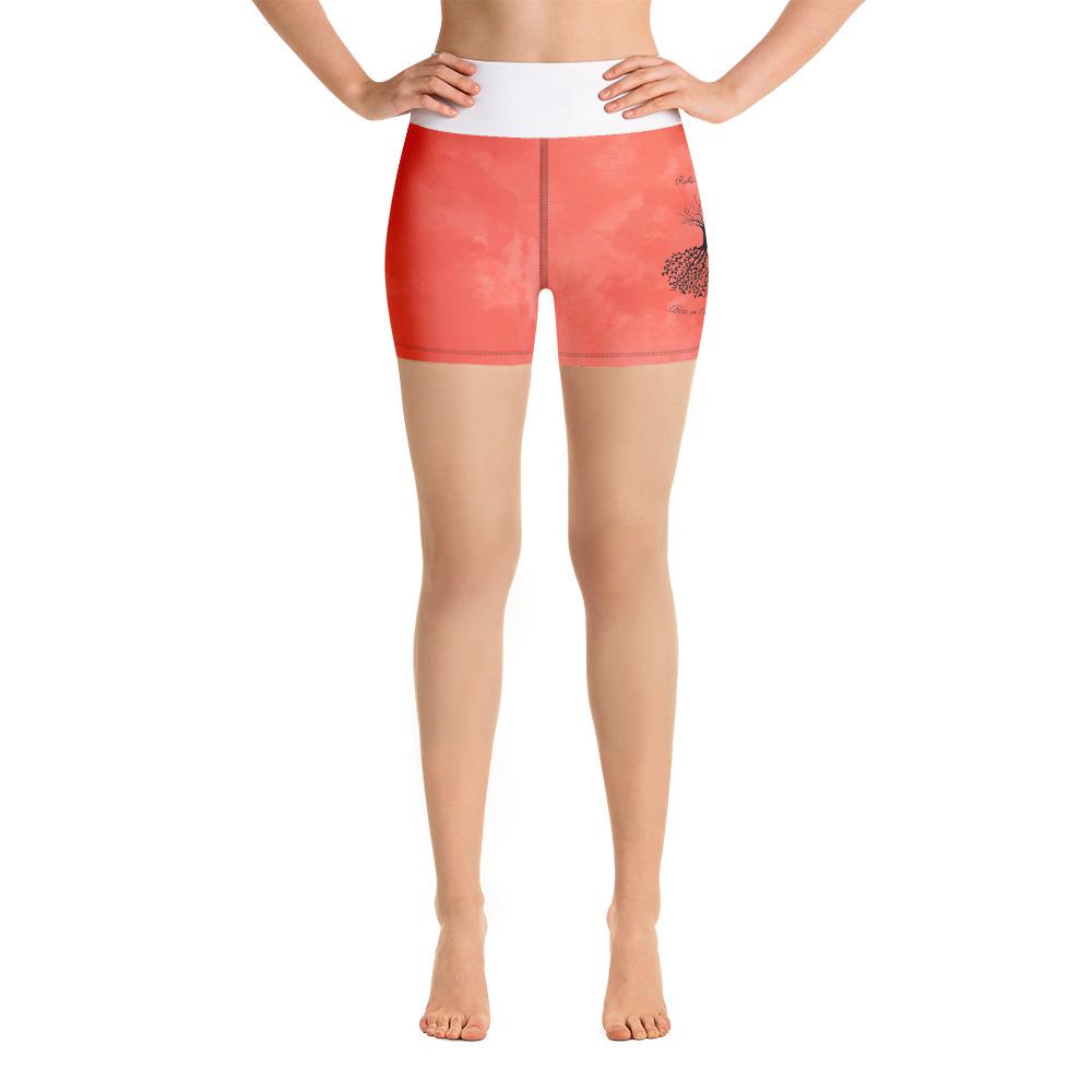 Born on Earth - Roots In The Universe -EARTH. These shorts have a body-flattering fit that will make you feel super comfortable even during the most intense workouts. They come with a high waistband and are made from soft microfiber yarn. • 82% polyester, 18% spandex • Very soft four-way stretch fabric • Comfortable high waistband • Flat seam and coverstitch Size guide XS S M L XL Waist (inches) 25 ¼ 26 ¾ 28 ⅜ 31 ½ 34 ⅝ Hips (inches) 35 ⅜ 37 38 ⅝ 41 ¾ 44 ⅞ All Inspirational Designs done in collaboration With GNM and Will's Mighty Design.