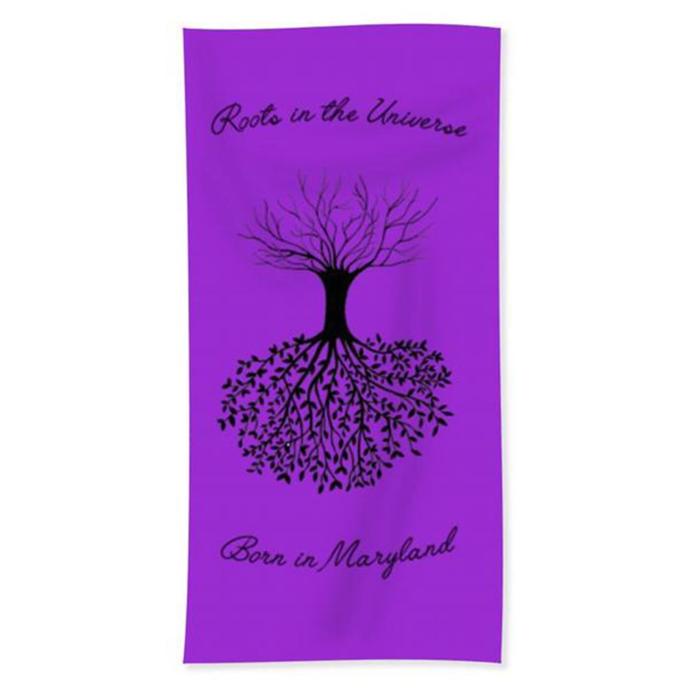 Born in Maryland -Roots In The Universe -Maryland. Our luxuriously soft beach towels are made from brushed microfiber with a 100% cotton back for extra absorption. The top of the towel has the image printed on it, and the back is white cotton. Our beach towels are available in two different sizes: beach towel (32" x 64") and beach sheet (37" x 74").Don't let the fancy name confuse you... a beach sheet is just a large beach towel. All Inspirational Designs done in collaboration With GNM and Will's Mighty Design.