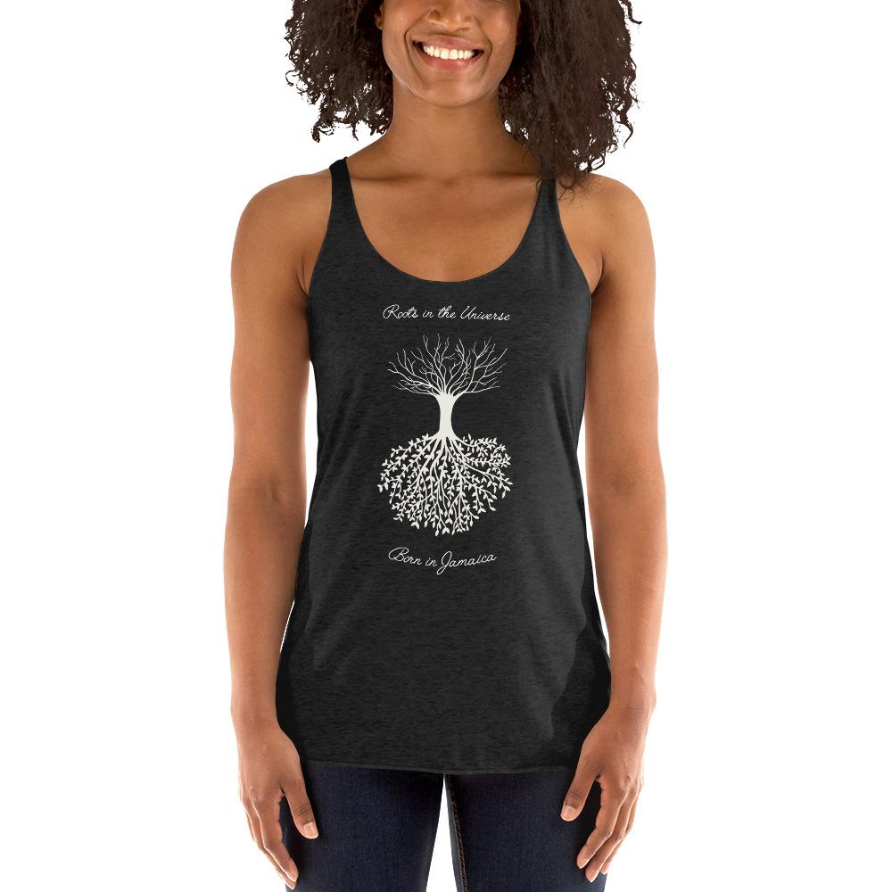 Born in Jamaica -Roots In The Universe -Women Racer Back. This racerback tank is soft, lightweight, and form-fitting with a flattering cut and raw edge seams for an edgy touch. • 50% polyester/25% combed ring-spun cotton/25% rayon • Fabric weight: 4.2 oz (142 g/m2) • Raw edge seams • Fabric is laundered to reduce shrinkageSize guide XS S M L XL Length (inches) 25 ⅞ 26 ½ 27 ⅛ 27 ¾ 28 ⅜ Width (inches) 15 16 17 18 19 ½ All Inspirational Designs done in collaboration With GNM and Will's Mighty Design.