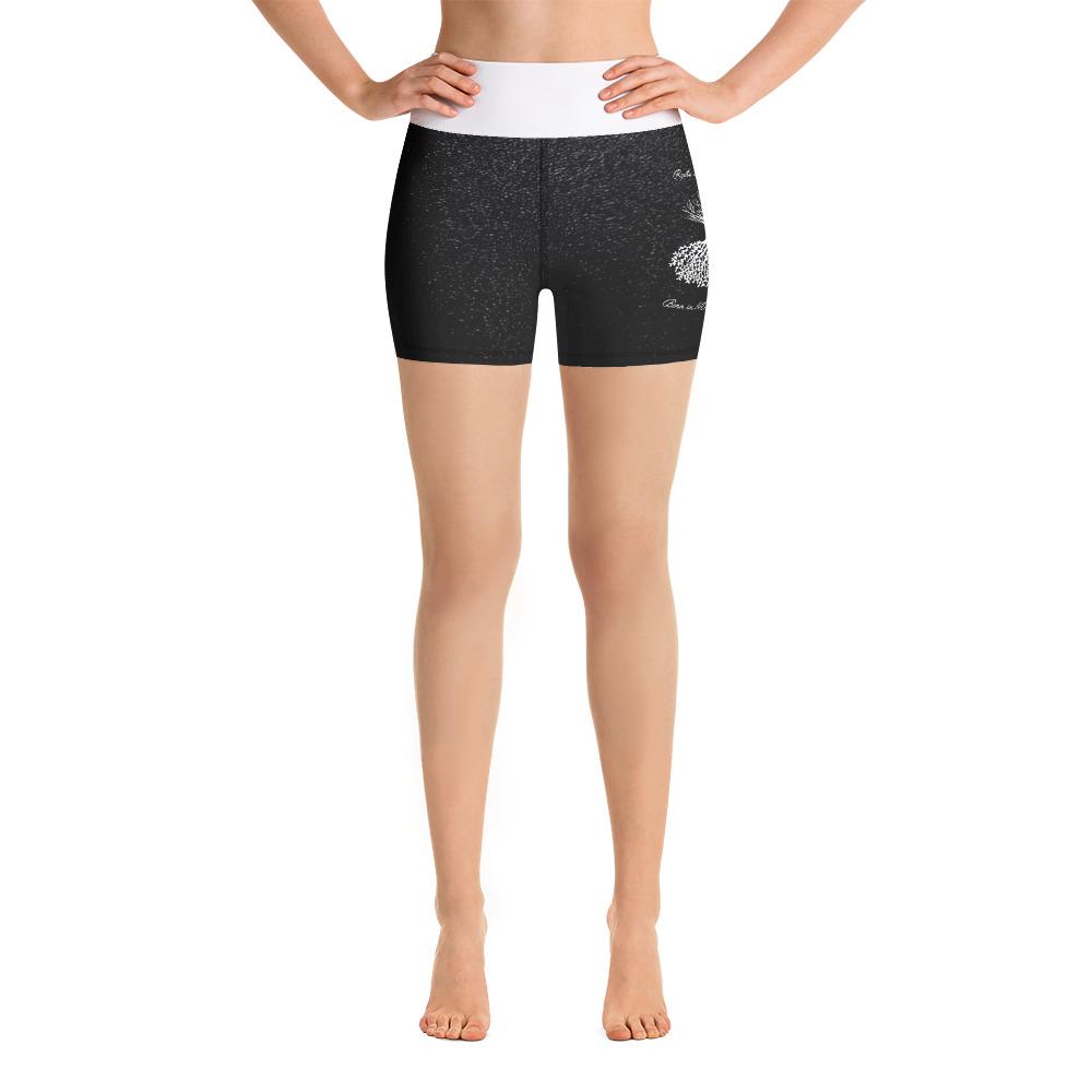 Born in Minnessota -Roots In The Universe -Yoga Shorts. These shorts have a body-flattering fit that will make you feel super comfortable even during the most intense workouts. They come with a high waistband and are made from soft microfiber yarn. • 82% polyester, 18% spandex • Very soft four-way stretch fabric • Comfortable high waistband • Flat seam and coverstitchSize guide XS S M L XL Waist (inches) 25 ¼ 26 ¾ 28 ⅜ 31 ½ 34 ⅝ Hips (inches) 35 ⅜ 37 38 ⅝ 41 ¾ 44 ⅞ All Inspirational Designs done in collaboration With GNM and Will's Mighty Design.